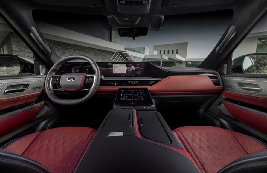 В передней части автомобиля представлена новая панель приборов с плавными линиями, которые сосредотачивают внимание на двух дисплеях, расположенных рядом. Это значительный прогресс по сравнению с предыдущими системами инфотейнмента Infiniti. Две 14,3-дюймовые экраны поражают яркостью графики и быстродействием, встроенные функции Google, включая карты и виртуального помощника, теперь стандартны.